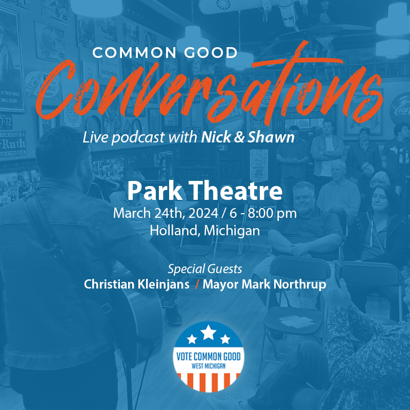 A few years ago brothers-in-law Nick and Shawn started doing the unthinkable at family gatherings – talking about politics and faith at the dinner table. While at times tense and cautious those conversations were filled with curiosity, nuance, grace, and humor. Wanting to lean into that experience they decided to start a podcast. Common Good Conversations is a weekly opportunity for Nick and Shawn to talk about the politics and faith of West Michigan by being curious, nuanced, grace-filled, and humorous; perhaps they’ll learn something along the way.