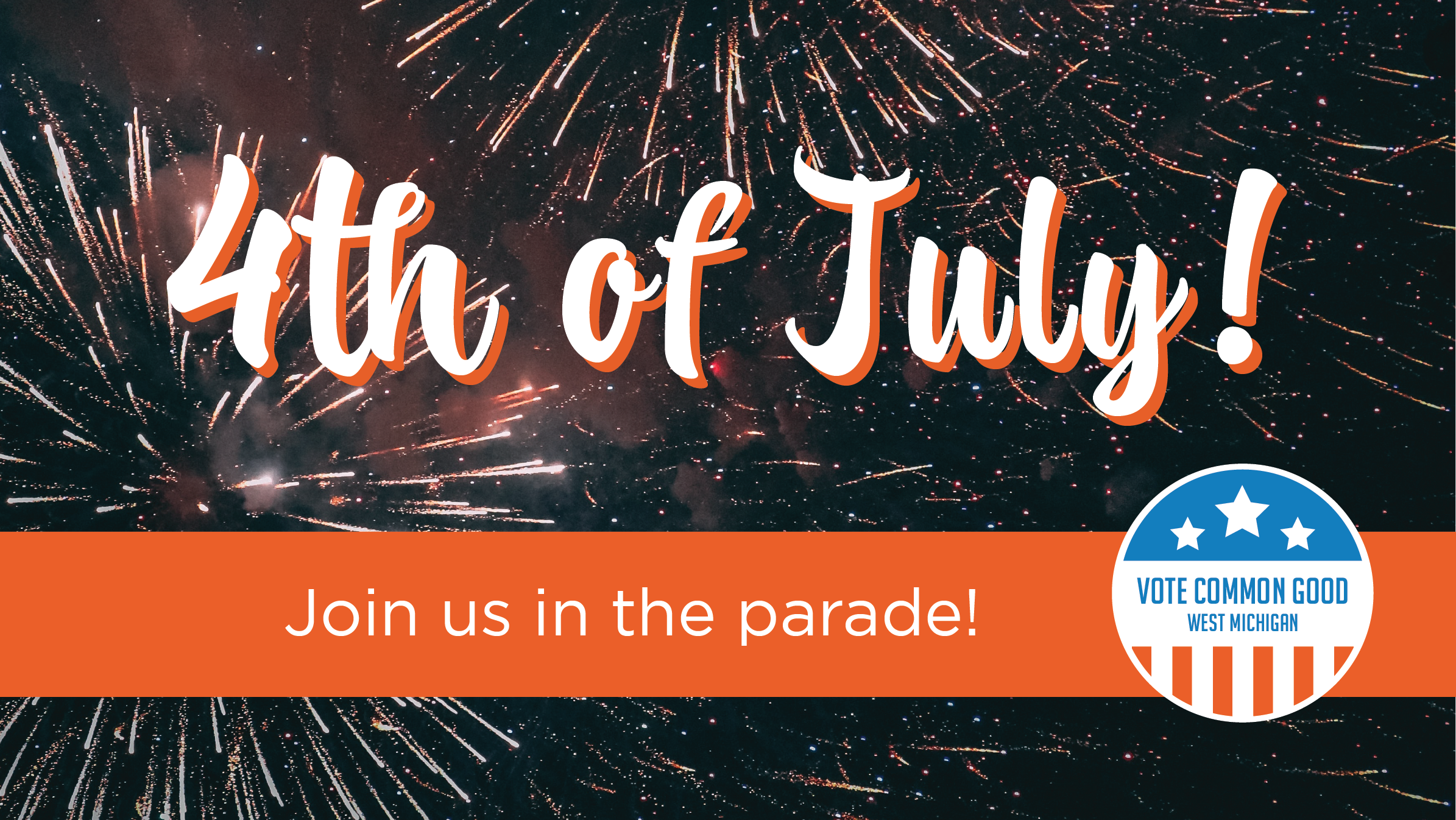 Help Vote Common Good: West Michigan expand our reach by passing out flyers and candy at the Grandville 4th of July Parade. We will meet at 10:30am (location TBD). The parade starts at 11 and should last approximately 1 hour; If anyone needs to take a break we will have a pace vehicle with us. VCG-WM will provide flyers and candy.